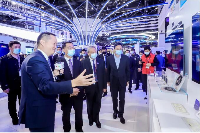 10月14日,由工業和信息化部主辦的中國國際信息通信展覽會(PT展)在國家會議中心盛大開幕。工業和信息化部黨組成員、副部長劉烈宏一行蒞臨長飛光纖光纜股份有限公司(以下簡稱“長飛公司”,股票代碼:601869.SH、06869.HK)展臺,并聽取公司黨委書記、董事長馬杰匯報。