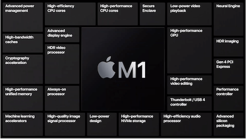 要論2020年芯片中最令消費者激動的莫過于是有不講武德之稱,同樣采用5nm制程的蘋果M1芯片。該芯片內有四個高性能“Firestorm”核心和四個低功耗“Icestorm”核心,其架構能實現以往X86架構無法達到的能效比優化。蘋果宣稱低功耗核心只需要高性能核心十分之一的電量。M1芯片還包含蘋果自己設計的8核圖形處理器。蘋果宣稱它可以同時執行25,000個線程。芯片還有一個專用的16核神經網絡引擎,可以每秒執行11兆次運算。