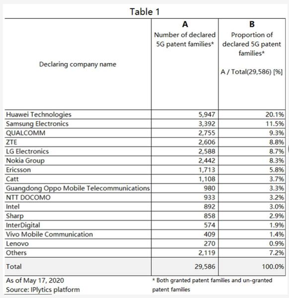 德國專利數(shù)據(jù)庫公司IPlytics的研討會報告表明:截至2019年底,在聲明的4G/5G關(guān)鍵專利族方面,排名前15位的聲明者中一半來自中國,CATT/大唐排名第8位。在聲明的4G/5G關(guān)鍵專利方面,CATT/大唐排名第10位。