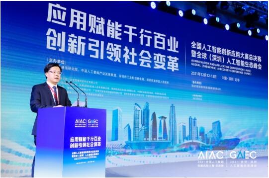 2021年12月13日,全國(guó)人工智能創(chuàng)新應(yīng)用大賽頒獎(jiǎng)典禮暨全球(深圳)人工智能生態(tài)峰會(huì)在深圳龍華區(qū)成功舉行。本次頒獎(jiǎng)典禮及峰會(huì)由中國(guó)信息通信研究院、中國(guó)人工智能產(chǎn)業(yè)發(fā)展聯(lián)盟、深圳市工業(yè)和信息化局、深圳市龍華區(qū)人民政府聯(lián)合主辦,以“應(yīng)用賦能千行百業(yè),創(chuàng)新引領(lǐng)社會(huì)變革”為主題,邀請(qǐng)來(lái)自政府、企業(yè)、高校、科研機(jī)構(gòu)等領(lǐng)導(dǎo)嘉賓,共話人工智能產(chǎn)業(yè)生態(tài)構(gòu)建思路和規(guī)模工程化落地路徑。12月12日,全國(guó)人工智能創(chuàng)新應(yīng)用大賽總決賽在深舉行。