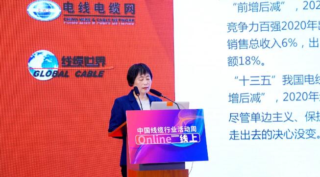 在上海電纜研究所信息會(huì)展中心主任凌成剛的主持下,上海電纜研究所工程咨詢部國(guó)家注冊(cè)咨詢師孫欣發(fā)表《2021中國(guó)線纜產(chǎn)業(yè)最具競(jìng)爭(zhēng)力企業(yè)評(píng)測(cè)工作報(bào)告》。