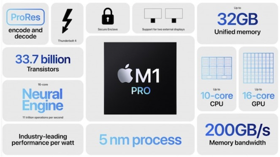 不過,更值得注意的是,相比于頭幾年PC市場處理器的擠牙膏,今年延續了去年蘋果M1開始動輒性能翻幾翻的特點。今年伴隨MacBook Pro 14寸及16寸發布推出的 M1 Pro/M1 Max,更是可謂瘋狂堆料,CPU性能相比M1再提升70%,GPU速度提升最高4倍,NPU速度提升3倍。其中,M1 Pro 芯片采用 5nm 制程工藝,封裝了337億個晶體管,配備10核 CPU,擁有8個高性能核心與2個高能效核心。M1 Max芯片在M1 Pro的基礎上,將內存帶寬提高至最高400GB,并配有最高64GB的統一內存。M1 Max擁有570億個晶體管,比 M1 Pro多出70%;其同樣配備10核CPU,并配有最高32核GPU,這也讓它的圖形處理速度是M1的4倍。