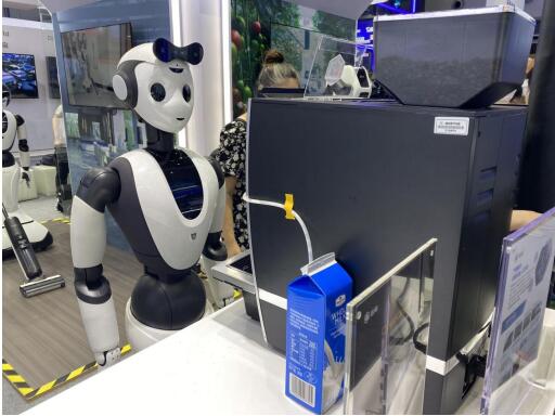 在看過Cloud Ginger 2.0打掃衛生之后,大飽眼福的現場觀眾因意猶未盡而遲遲不肯離開,此時一陣咖啡香飄來的正是時候……原來,這是達闥展臺上另一位“二次元女孩”(Cloud Ginger 1.0)正在“親手”為賓朋們調制美味咖啡。在云端強大的算力和Ginger自身SCA柔性關節的加持下,她輕巧地用手指精準按下咖啡機的啟動按鍵,等待咖啡接滿后手眼協同拿起咖啡杯,送給現場觀眾品嘗。然后,她又回到原位,繼續調至下一杯咖啡……