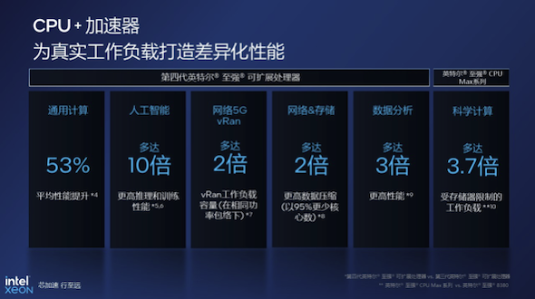 強大的性能表現,更要能夠在實際工作中實現效能的提升。“我們的客戶和企業正在跨工作負載優化他們相關的KPI,無論這些KPI是包括更好的性能、更好的效率、更好的延遲、更好的每瓦平臺性能,還是更好的系統成本(TCO)。”莊秉翰表示英特爾至強的架構、平臺和加速器創新為在其環境中運行一系列工作負載的客戶提供了一套性能領先的產品解決方案,無論是在云端、邊緣還是在本地,通過更多CPU核心和內置加速器組合,提供強大的性能提升。目前,第四代英特爾至強的七大算力神器已經主力合作伙伴在不同領域的業務中實現提升。