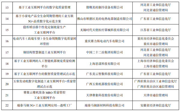 2022 年工業互聯網試點示范公示名單