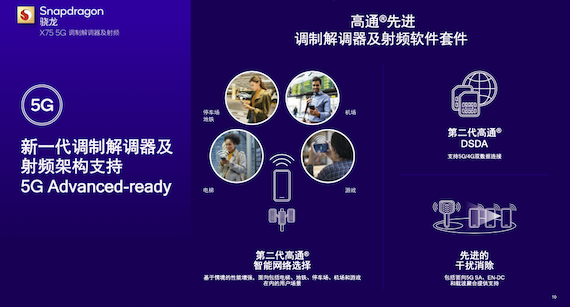 吃得飽也要吃得好。除了支持現有全部5G頻段外,驍龍X75還支持衛星通信,可基于Snapdragon Satellite提供應急服務和雙向消息通信;內置的第二代高通5G AI處理器性能提升至前代的2.5倍以上,配合第二代高通5G AI套件,能夠將GNSS定位精度提升50%,毫米波波束接收功率提升25%;擁有融合架構的毫米波和Sub-6GHz射頻收發器實現了20%的功耗降低;第二代高通智能網絡選擇還能夠幫助用戶在身處電梯、地鐵、機場、停車場等場景時,根據用戶所處環境有效地選擇網絡。