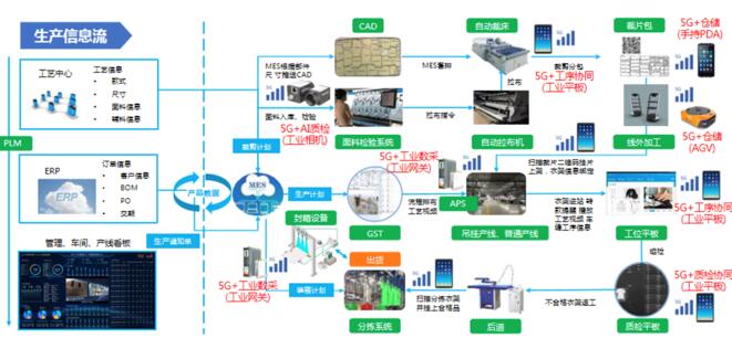 如同師傅在操控木偶時手握多根線絲的雙手,5G專網在將不同的數據向上匯總后,還需要對數據實現利用,并反之對具體的環節進行調控。聯通以5G專網為驅動,實現移動終端與平臺的有效協同。引入MES(制造執行系統)、APS(計劃與排程系統)、GST(一般⻋縫時間)、PLM(產品生命周期管理)、WMS(倉庫管理系統)、SCM(供應鏈管理)等多個模塊,與企業現有的 ERP(企業資源計劃)、EHR(人力資源管理信息化)、OA(辦公自動化)、 IPOS(終端零售客戶)等系統實現融通,構建了以5G虛擬專網為核心的AI視覺檢測、工業數采、倉儲管理、硬件和工序協同等多個應用場景,實現企業產供銷一體化的有效協同。