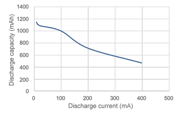 除了電流消耗不同之外,電池容量也是可以改變的,具體取決于平均放電電流和使用模式。在圖1中可以看到,隨著堿性電池放電電流的增大,放電容量也發(fā)生了相當(dāng)大的變化。