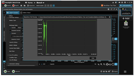 圖5:使用BV9210B/11B PathWave BenchVue高級電池測試和模擬軟件進(jìn)行電池模擬