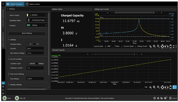 圖7:利用BV9210B/11B PathWave BenchVue高級電池測試和模擬軟件跟蹤電池充電情況,并實(shí)現(xiàn)過程的可視化