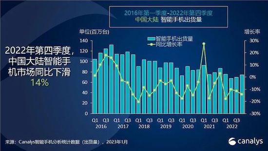 對于手機來說,也同樣面臨著這樣的局面,以往很多用戶每年購買2部手機是一個常見的情況。但時間來到2022年年底,多家機構已經預測,全球智能手機換機周期將達43個月,中國智能手機換機周期預計增加到34個月。分析機構Canalys發布數據顯示,2022年中國智能手機出貨量同比降低14%至2.87億部,是近十年來首度跌入3億部以下。