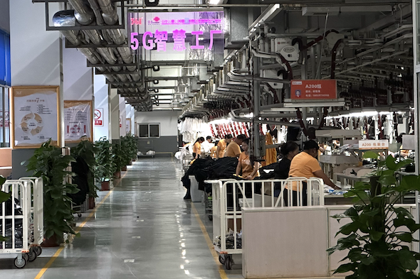 本次數字中國建設峰會期間,除了會展現場的展示外,中國聯通專門邀請外界走進位于福建泉州的361度5G+智慧工廠實地進行參觀。數字化同樣讓企業對于原有的生產線有了進一步的了解與認知,生產效率實現了量化,各個生產環節的數據都會進行上報匯總,消除了生產過程中的信息孤島,并且能提取出可量化的效率信息,作為精益生產的數據依據。包含從裁剪車間、車縫流水線、質檢等整個生產流程的各個環節也全部實現了可視化,擁有便捷的人機交互系統。