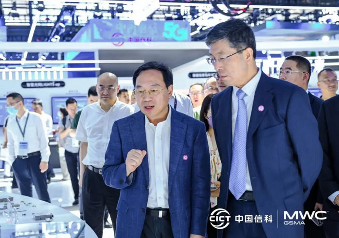開展首日,工業和信息化部總工程師趙志國一行蒞臨中國信科展臺,聽取了中國信科副總經理、總工程師陳山枝關于集團布局6G預研方面取得的階段性進展和成果介紹、積極支撐我國實現6G技術引領的戰略目標,了解了智慧光網技術創新中400G 超長距現網應用取得的技術突破,以及智惠算力領域的全棧式液冷解決方案和數據中心內部互聯的1.6T OSFP-XD DR8高速光模塊產品。