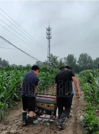 滿順大區黨小組組長劉希組織黨員先鋒隊帶著17臺發電機趕赴現場,大雨滂沱。劉希組織隊員手臺肩扛把發電機運送到重點基站,保障了重點基站通信安全。滿城鎮陶家佐基站為滿城區重保基站,其下掛多個拉遠基站,覆蓋鎮政府及城西數萬人通信安全,此基站面臨洪水沖毀,鐵塔員工緊急抽水,人工背沙袋防汛,經過6個小時的努力保障了基站安全。