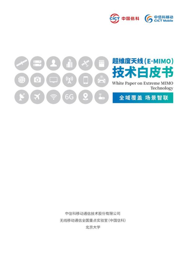 研討會上,中信科移動聯合無線移動通信全國重點實驗室(中國信科)及北京大學發布了《超維度天線(E-MIMO)技術白皮書》。白皮書結合近年來多天線技術理論與相關支撐技術的發展情況,以及未來移動通信系統與業務需求的發展趨勢,對多天線技術的總體演進動向進行了分析并論述了超維度天線(Extreme Multiple Input Multiple Output,E-MIMO)的概念與內涵。
