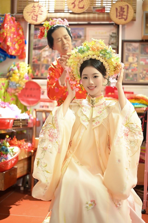 “象牙筷子穿圓髻,鮮花做成簪花圍”。簪花圍是國家級非物質(zhì)文化遺產(chǎn)蟳埔女習(xí)俗的重要組成部分,代表著閩南文化的獨(dú)特風(fēng)情。在“AI守藝中國”專題,你可以輕松生成頭戴蔡愛蓮老師親手制作的同款簪花圍照片,打破時空限制,網(wǎng)紅旅拍寫真一秒完成,體驗(yàn)閩南漁村流傳千年的美麗習(xí)俗。