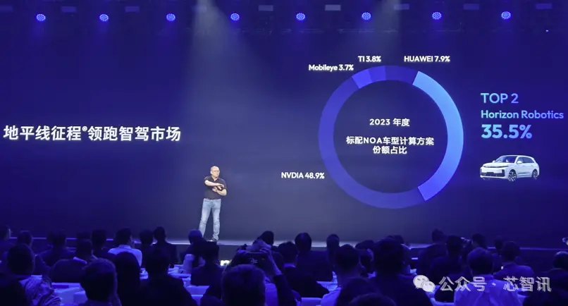 在ADAS/自動(dòng)駕駛芯片市場(chǎng),主要被英偉達(dá)、Mobileye和特斯拉(主要自用)等廠商占據(jù),市場(chǎng)份額約70%。不過(guò),地平線、華為、黑芝麻智能國(guó)產(chǎn)廠商近兩年發(fā)展也很快。根據(jù)第三方機(jī)構(gòu)的數(shù)據(jù)顯示,在2023年自主品牌乘用車標(biāo)配前視一體機(jī)計(jì)算方案市場(chǎng),地平線拿下23.7%的市場(chǎng)份額,位居第二,僅次于Mobileye。在2023年標(biāo)配NOA車型計(jì)算方案市場(chǎng),地平線也拿到了35.5%的市場(chǎng)份額,僅次于英偉達(dá),位居第二!