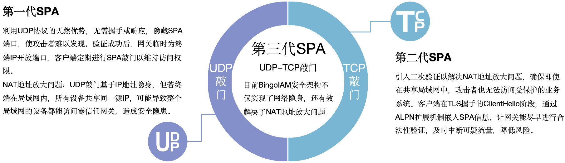 新一代SDP安全邊界:通過使用第三代SPA技術,有效防止TCP SYN DDO、惡意嗅探、網絡掃描等攻擊,同時,最小化按需開放流量訪問窗口,建立更嚴格、更安全的零信任身份邊界。