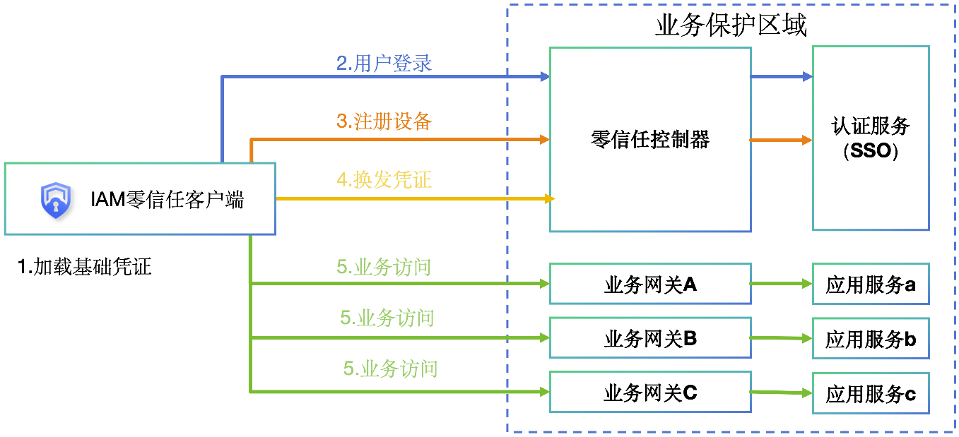 5. 業務訪問:使用第4步獲取的用戶憑證訪問安全邊界內的經授權的應用服務。