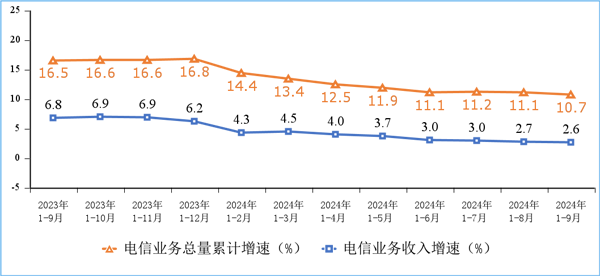 電信業務收入和電信業務總量累計增速