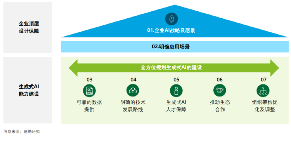 作為信息和通信基礎設施的建設者和運營者,電信行業為生成式AI的發展提供了基礎支持,甚至在生成式AI應用的實施中走在了前列。為了成為生成式AI應用先鋒,電信運營商需要創建一個能夠激勵和動員組織的戰略愿景和路線圖,構建優先級AI能力以獲得動力,并靈活優化組織結構以確保運營模型和變革管理得以建立,同時要積極合作推動AI生態圈的建立。