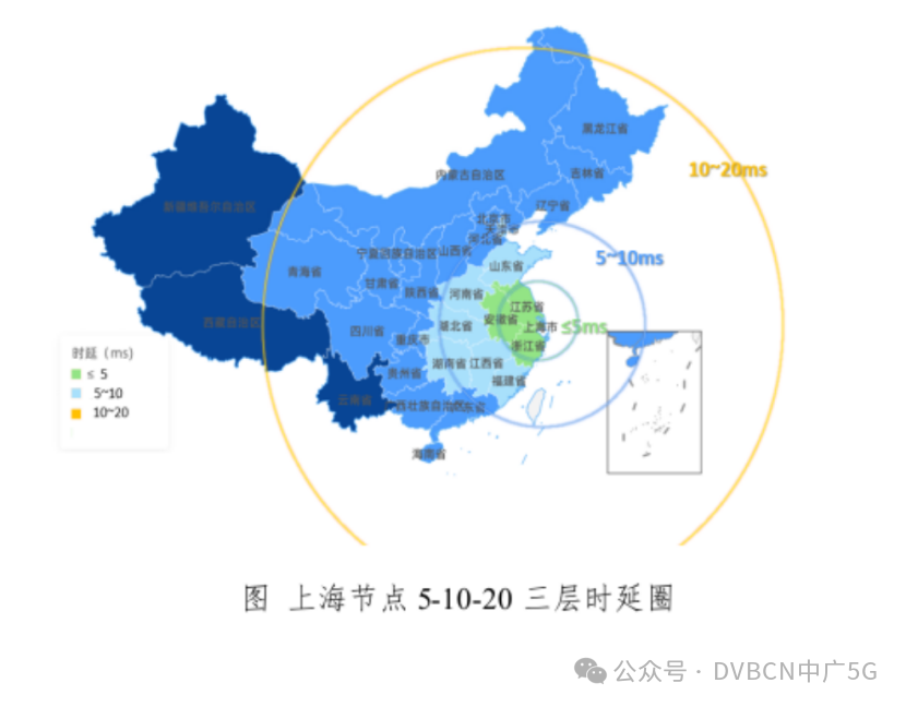 監測數據顯示,目前上海市內各企業間,以及到長三角地區重點城市為第一層時延圈,時延在7ms左右;上海節點至周邊省份,如山東、江西、湖北、福建等省份為第二層時延圈,時延在11ms左右;上海節點至京津冀、成渝、粵港澳等其它七大樞紐時延均在20ms以內,為第三層時延圈,其中到粵港澳、京津冀和成渝三個東部樞紐時延分別在15ms、14ms、15ms以內。
