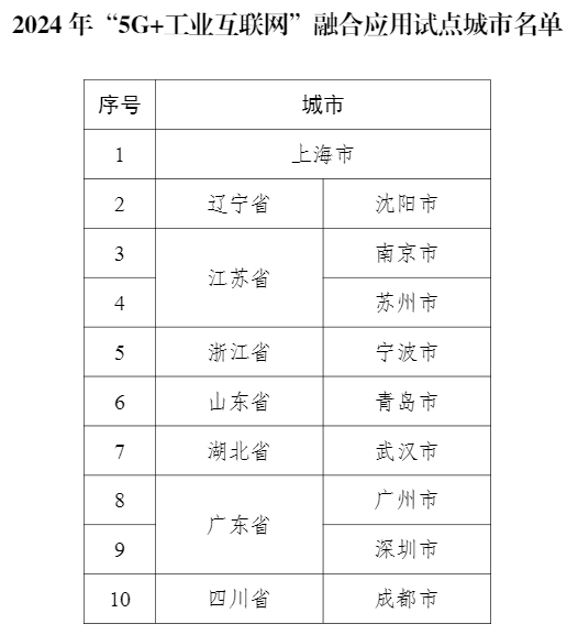 10城入選!2024年“5G+工業(yè)互聯(lián)網(wǎng)”融合應(yīng)用試點(diǎn)城市名單公布