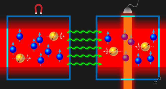 研究人員巧妙地利用了兩個(gè)相距 60 毫米的極化 129Xe 原子系綜,在軸子窗口內(nèi)探測(cè)軸子暗物質(zhì)誘導(dǎo)的自旋相關(guān)相互作用。研究人員在實(shí)驗(yàn)裝置中以一個(gè)原子系綜充當(dāng)自旋傳感器,另一個(gè)原子系綜作為自旋源,為了提高原子系綜核自旋的極化度或者探測(cè)靈敏度,他們?cè)谠酉稻C中混入堿金屬,成功實(shí)現(xiàn)了對(duì)原子系綜極化矢量信號(hào)高達(dá) 145 倍的放大,構(gòu)建了一個(gè)超靈敏的軸子暗物質(zhì)探測(cè)器。