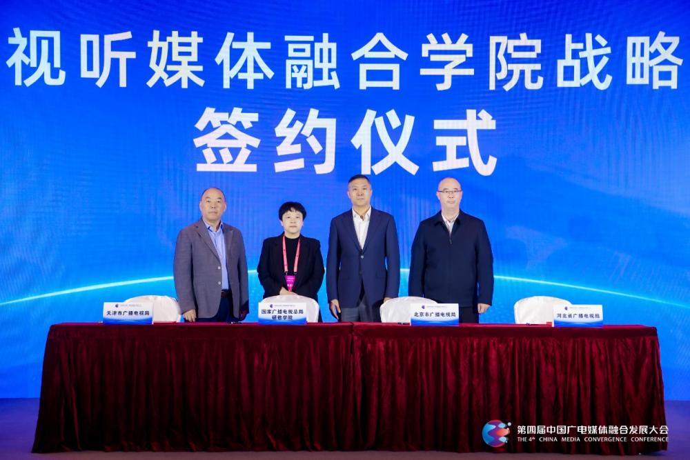 圖為:《京津冀新視聽媒體融合學院戰(zhàn)略合作協(xié)議》簽約現(xiàn)場