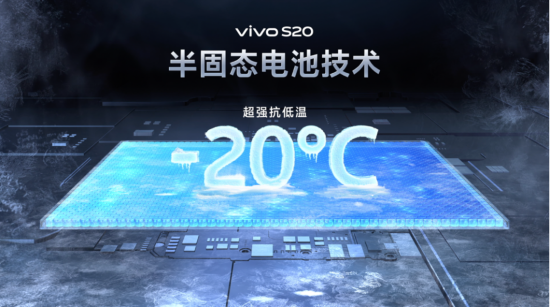 續航方面,vivo S20系列再次刷新了輕薄續航的新紀錄。vivo S20采用了第三代硅負極電池技術,能量密度高達838Wh/L,加之堆疊工藝的升級,使得7.19mm的機身能夠裝入6500mAh的超大容量電池。滿電的vivo S20可以在極致畫質模式下持續玩游戲近10小時,即使在-20℃的極寒狀態下,也能連看18小時視頻,堪稱“低溫戰神”。