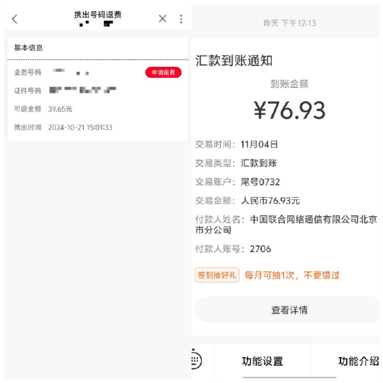 明明“不存在的業務”,中國聯通卻以該“業務”為由阻礙用戶轉出,若要強制取消“業務”,必須在線下營業廳執行;而在成功轉出之后,退還話費余額也設置了陷阱,涉嫌故意克扣用戶話費。