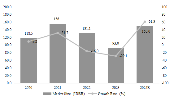 2020-2024年全球存儲(chǔ)器市場(chǎng)規(guī)模及增速