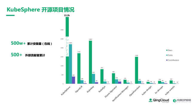 500萬以上的累計(jì)安裝量、500以上的外部貢獻(xiàn)者、國內(nèi)多領(lǐng)域的客戶、海外市場的合作伙伴,通過開源社區(qū)的培育與圍繞客戶的產(chǎn)研團(tuán)隊(duì),顯然KubeSphere已經(jīng)擁有了一個(gè)足以讓“軟件定義”充分發(fā)揮創(chuàng)造力可能的基礎(chǔ)。