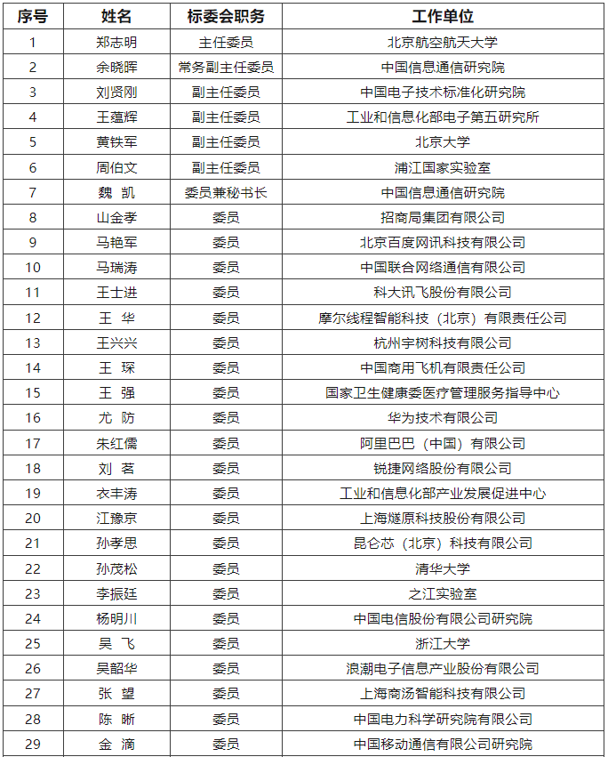 附:第一屆工業和信息化部人工智能標準化技術委員會委員名單