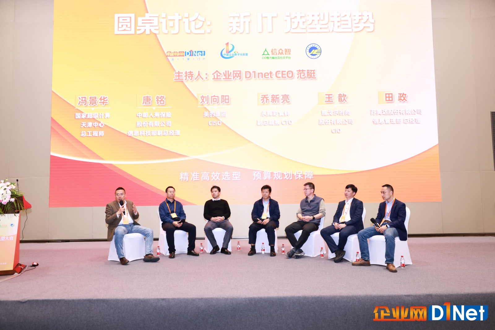 在企業網D1net CEO范脡主持的圓桌討論環節,國家超級計算天津中心總工程師馮景華、中郵人壽保險股份有限公司信息科技部副總經理唐銘、美的集團CISO劉向陽、永輝彩食鮮副總裁兼CTO喬新亮、雅戈爾時尚股份有限公司CIO王歆、蘇美達股份有限公司信息管理部總經理田政,圍繞“新IT選型趨勢”這一主題,展開了深入的交流探討,為企業選型提供了新視角與新思路。(相關報道將另行呈現)