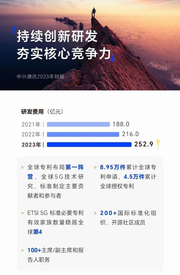 中興通訊表示,2023年,面對外部復雜環境,中興強化了研發投入,夯實自身核心能力,以底層技術創新結合高端制造工藝不斷提升產品競爭力。