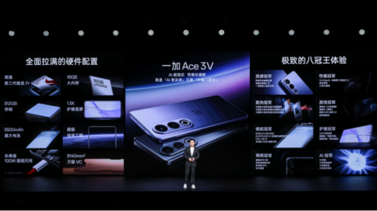飛象網訊 2024 年 3 月 21 日,一加正式發布一加 Ace 3V 。一加 Ace 3V 全球首發第三代驍龍 7+ 移動平臺,采用5500mAh 大電池 + 長壽版 100W 超級閃充的續航組合,配備全新 1.5K 護眼直屏,更有全場景 AI 深度賦能,在質感、性能、續航、游戲和 AI 等維度全方位挑戰中端手機冠軍。