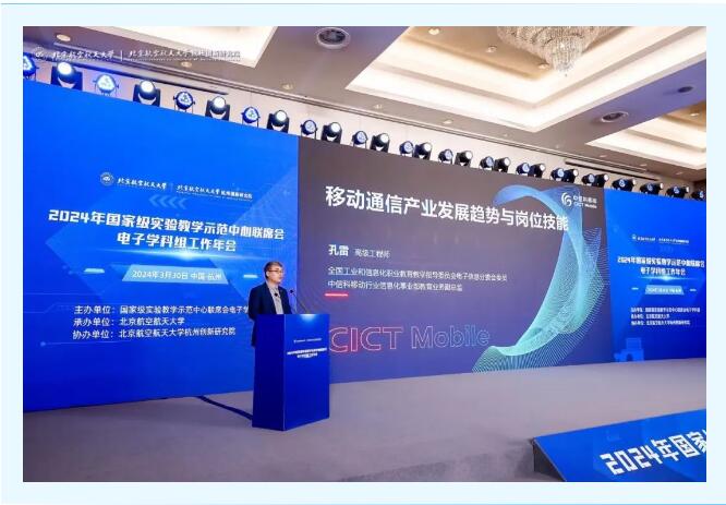 3月30日,2024年國家級實驗教學示范中心聯席會電子學科組工作年會在杭州順利召開。中信科移動行業信息化事業部教育業務線副總監、全國工業和信息化職業教育教學指導委員會電子信息分委會委員孔雷應邀參會,并做了題為《移動通信產業發展趨勢與崗位需求》的報告。當前,新一代信息技術飛速發展,推動各行業向數智化加速轉型,從而對高校電子信息類人才的需求也日益迫切,孔雷在現場分享了中信科移動基于工程項目制的崗位技能需求人才培養方案與成功案例。