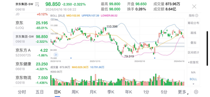 不過,資本市場對首秀似乎沒有明顯反饋。京東方面于4月15日晚間官宣AI劉強東將啟動直播,截至4月16日收盤,京東集團股價反而跌去2.3%,收盤價為98.85元。