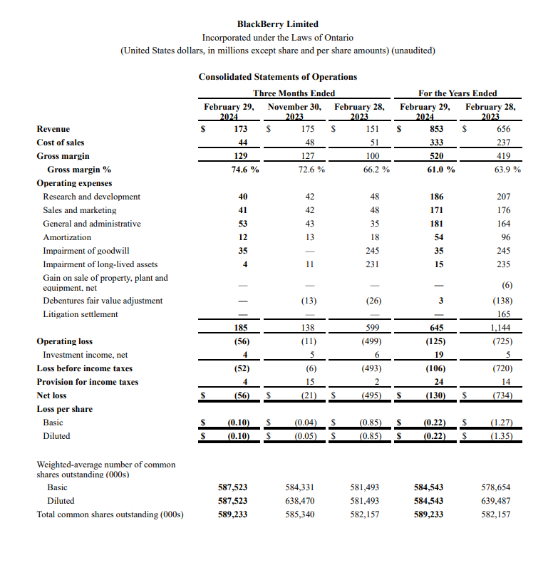 4 月 6 日消息,黑莓 2024 財年第四財季營收 1.73 億美元(IT之家備注:當前約 12.53 億元人民幣),超過分析師預期的 1.542 億美元。