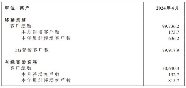 數據顯示,2024年4月份,中國移動用戶總數達到9.97362億戶,當月凈增客戶數173.7萬戶。有線寬帶方面,中國移動有線寬帶客戶總數達到3.06403億戶,當月凈增客戶數132.7萬戶。