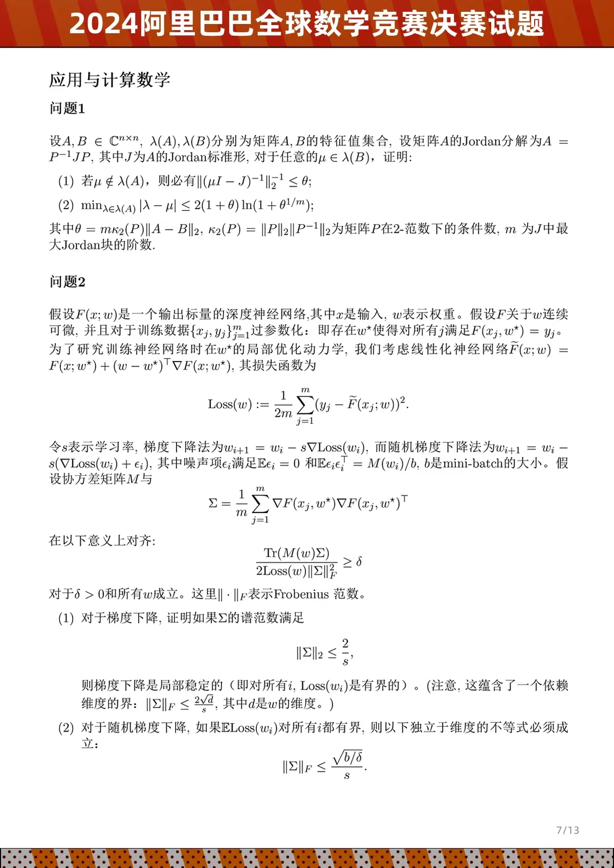 2024阿里巴巴全球數(shù)學(xué)競(jìng)賽決賽試題如下: