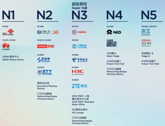 本屆展會(huì)共設(shè)五大展廳。其中最為大家熟知的超級(jí)展館位于N3展廳,中國移動(dòng)、中國電信、中興通訊和GSMA展館均設(shè)于此。