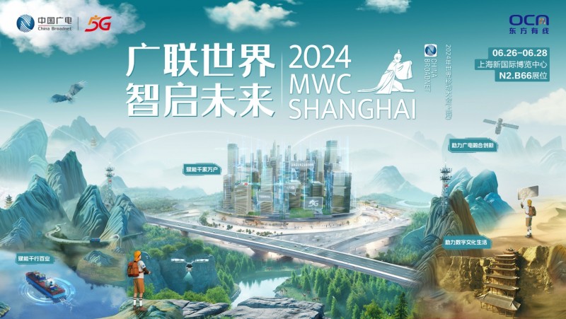6月26日,2024年世界移動通信大會(英文名:Mobile World Congress 簡稱:MWC)在上海開幕。中國廣電以“廣聯世界 智啟未來”為主題,在“廣電融合創新”和“數字文化生活”方面展示了全新進展,會同“賦能千家萬戶和千行百業”等數十項5G通信技術成果,以全新的視覺形象立體呈現了數字化時代的無限可能。