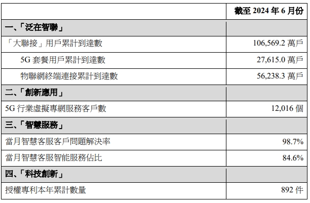 數據顯示,截至2024年6月份,中國聯通“大聯接”用戶累計達10.65692億戶,物聯網終端連接累計達5.62383億戶,5G行業虛擬專網服務客戶數達12016個,當月智慧客服服務問題解決率達98.7%,當月智慧客服智能服務占比達84.6%,授權專利本年累計數量達892件。