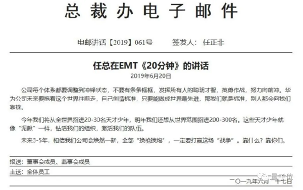 據悉,華為“天才少年”項目,是2019年任正非發起的用頂級挑戰和頂級薪酬去吸引頂尖人才的項目。2019年6月,華為內部的心聲社區掛出任正非6月20日在公司EMT(經營管理團隊)《20分鐘》的講話。