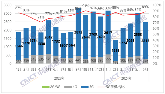 信通院:6月國內手機市場出貨量2491.2萬部,5G手機占比88.8%