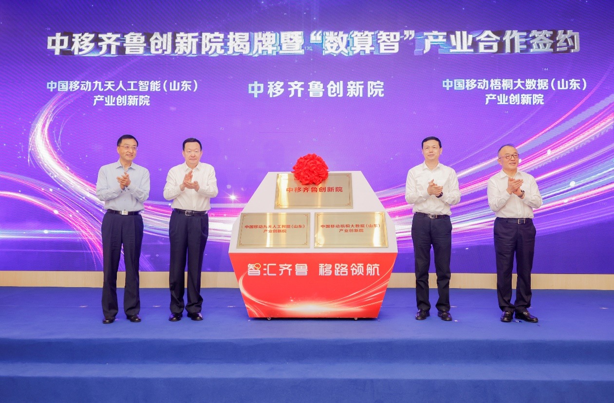 7月3日,中移齊魯創(chuàng)新院揭牌暨“數(shù)算智”產(chǎn)業(yè)合作簽約活動在山東濟(jì)南舉辦。山東省委副書記、省長周乃翔,山東省委常委、濟(jì)南市委書記劉強(qiáng),中國移動黨組書記、董事長楊杰,中國移動黨組成員、副總經(jīng)理高同慶共同為中移齊魯創(chuàng)新院(中國移動九天人工智能(山東)產(chǎn)業(yè)創(chuàng)新院、中國移動梧桐大數(shù)據(jù)(山東)產(chǎn)業(yè)創(chuàng)新院)揭牌。