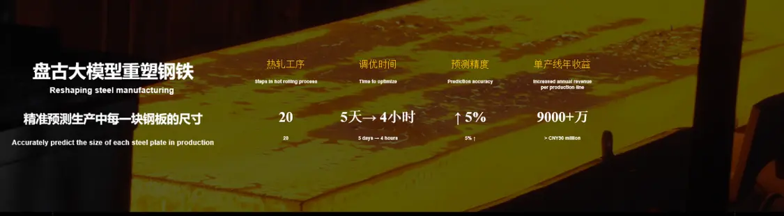 在產(chǎn)業(yè)發(fā)展主論壇上華為常務(wù)董事、華為云CEO張平安介紹了獲得本次WAIC SAIL獎(jiǎng)TOP30的華為云盤(pán)古鋼鐵大模型案例,據(jù)介紹,華為云盤(pán)古大模型已經(jīng)在寶鋼的一條熱軋生產(chǎn)線上線,精軋寬展預(yù)測(cè)精度較傳統(tǒng)模型提升了5%以上,每年有望多生產(chǎn)2萬(wàn)噸鋼板,增收9000多萬(wàn)元。讓我們看到,行業(yè)大模型正在加速落地應(yīng)用,解行業(yè)難題。