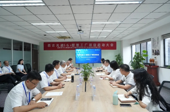 8月15日,由西安西古光通信有限公司與中國移動陜西公司攜手打造的5G+智慧工廠項目正式啟動。西古光通總經理司正中,副總經理孫國青,裝備總監陳勁,系統集成事業部總監王田,陜西移動重要客戶中心總經理毛強以及其他項目組成員出席了本次啟動儀式。